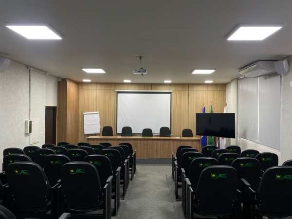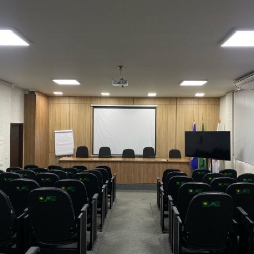 Composto por data show, tela de projeção, som integrado, microfone, wi-fi e ar condicionado.